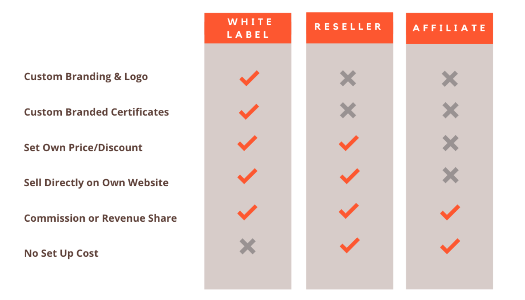 Sell courses using your branding. Learners purchase courses on your website and become your customers. We establish a revenue share model.